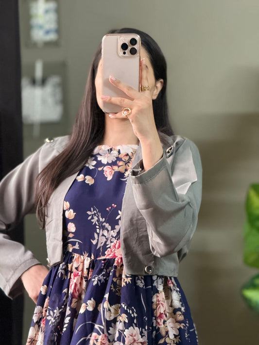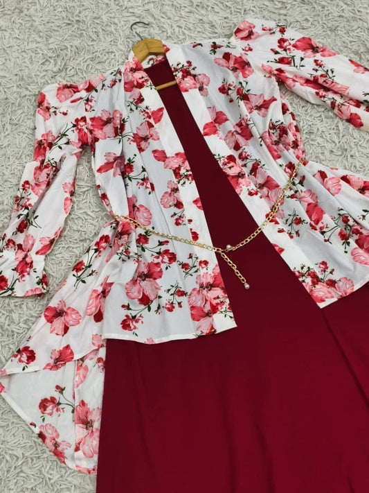 Elegant White Flower Print Maxi Dress with Jacket