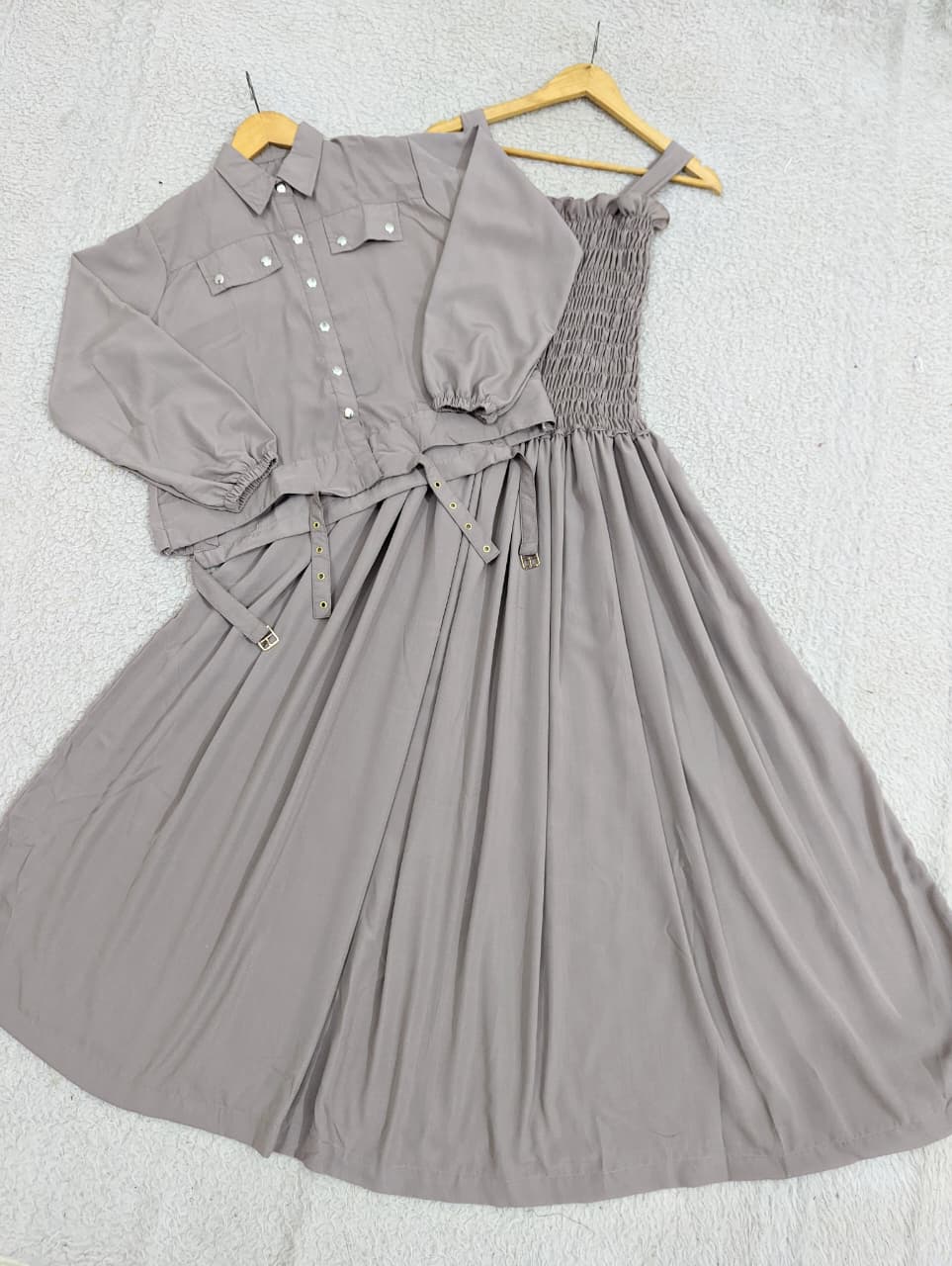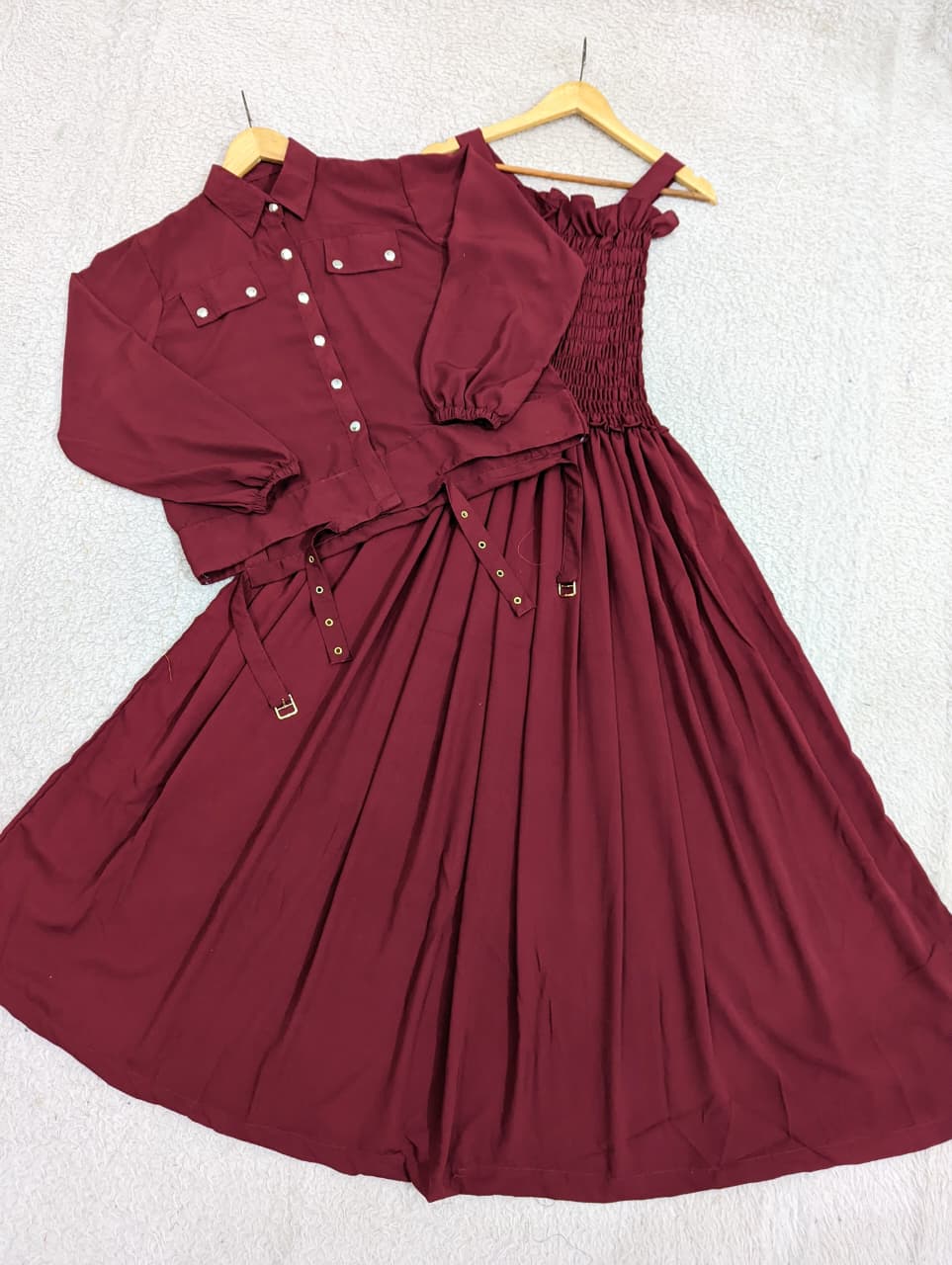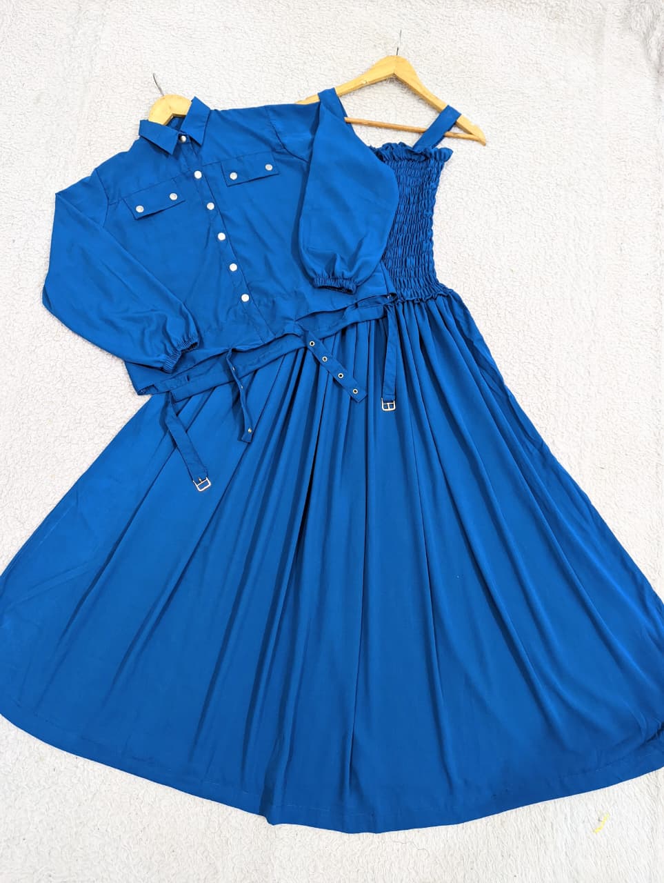 This Capsule Smoking jacket combines timeless elegance with practical design. Tailored from imported georgette, it features a refined smoking silhouette with dual pockets and a maxi length. The premium fabric ensures graceful draping and sophisticated appeal for formal occasions.