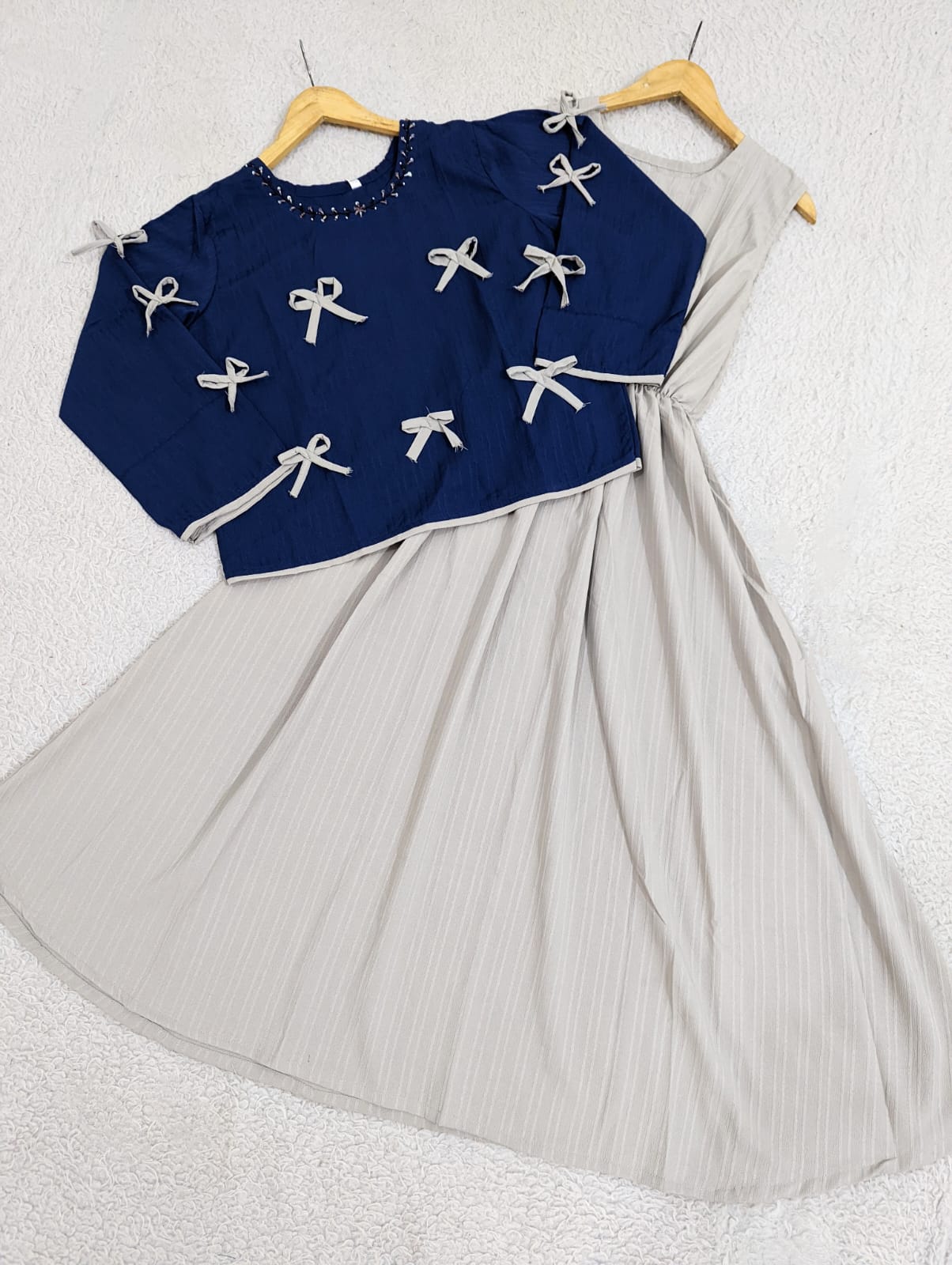 Elegant hand embellished bow top beautifully paired with flowing maxi. Crafted from soft georgette with luxurious stuff lining for comfort and grace. Perfect for special occasions and celebrations. The intricate embroidery adds a touch of sophistication to your wardrobe.
