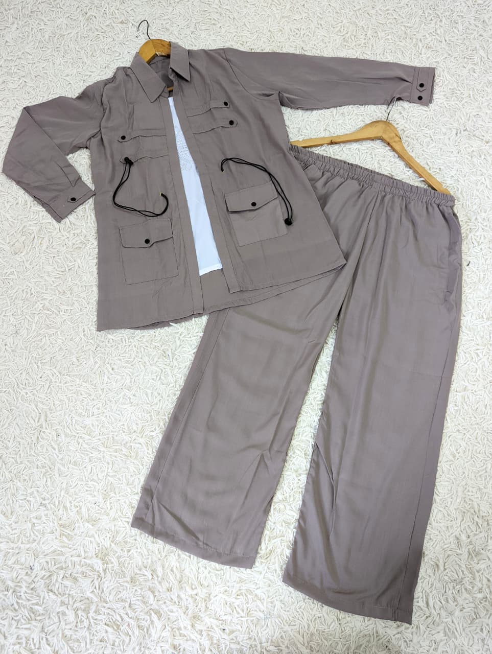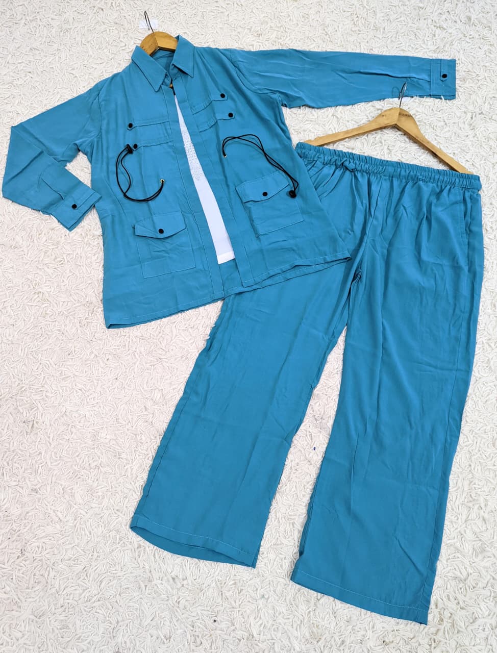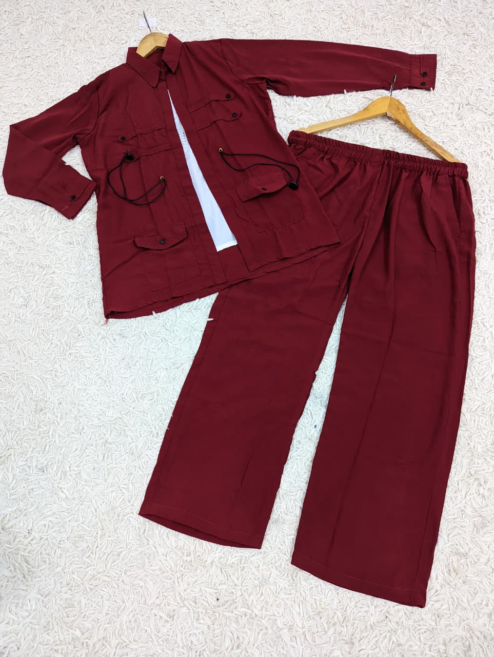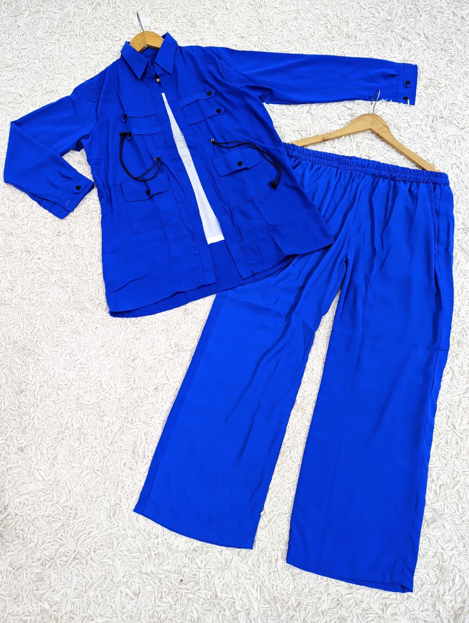This Funky Co-ord Set features a stylish stone-detail shirt paired with straight trousers, crafted from imported georgette fabric. The breathable material ensures comfort, while the coordinated design offers a chic, effortless look perfect for both casual and semi-formal occasions.