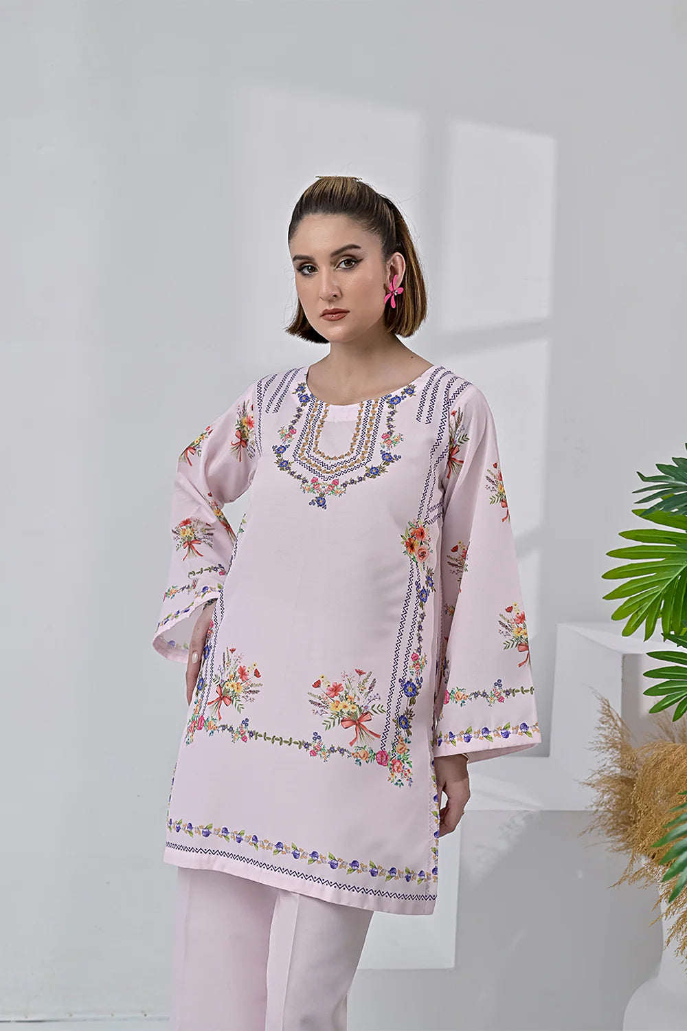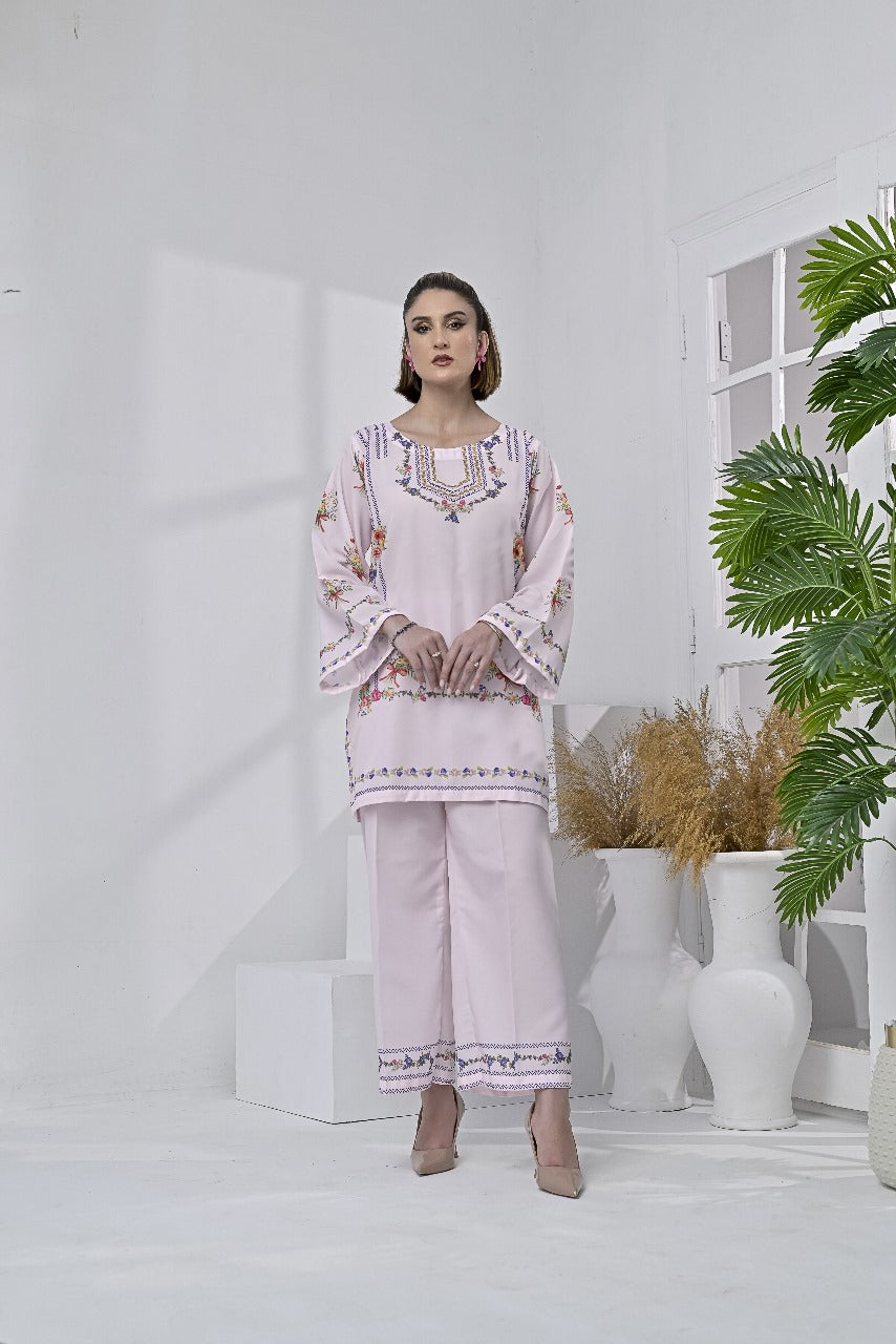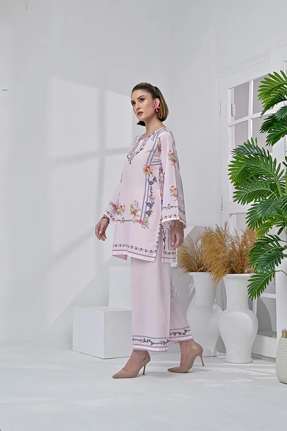 Petal Grains is soft, light, and effortlessly graceful. This pastel blush 2-piece stitched blended raw silk features delicate floral detailing on the neckline, sleeves, and hem, giving it a romantic, handcrafted feel. The straight shirt flows into easy wide-leg trousers with matching border prints. Comfortable and feminine, it’s the kind of outfit you’ll reach for when you want to look fresh without trying too hard.