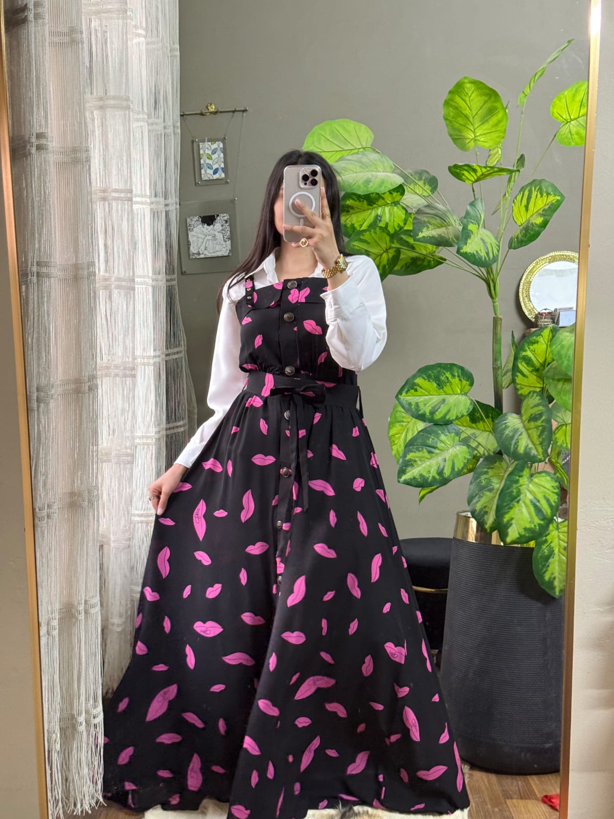 This Pink Lip Romper Set features a lightweight georgette fabric with a stylish button-down front, combining comfort and chic design. Perfect for warm days, its breathable material and tailored fit make it an effortless choice for casual outings or relaxed gatherings. Enjoy a playful yet polished look with this versatile romper.