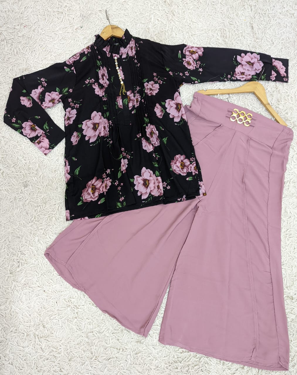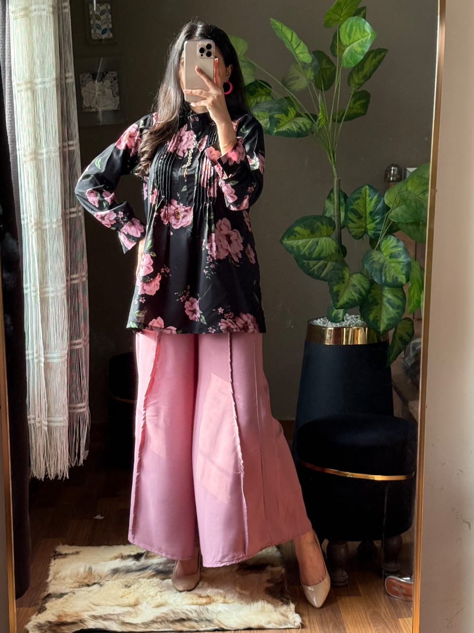 The Tulip Satka features elegant neckline detailing paired with a stylish flare-plaited pant, creating a graceful and contemporary silhouette. This ensemble combines traditional craftsmanship with modern design, ideal for occasions where comfort meets refined style. Perfect for adding a touch of sophistication to your wardrobe.